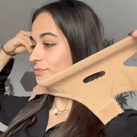 Pour utiliser la gaine, placez-laautour du mentonetajustez-lapour qu'elle soit bien en place. Assurez-vous que la pression est confortable mais suffisamment ferme pour soutenir le menton et les joues. Portez-la selon les instructions recommandées pour obtenir des résultats optimaux.